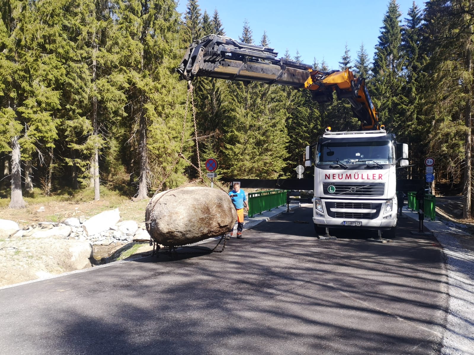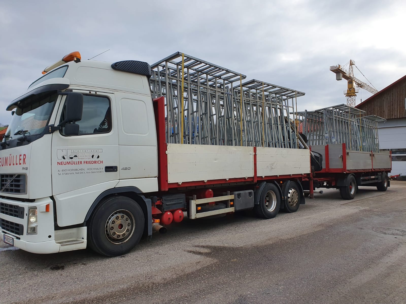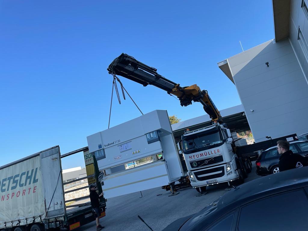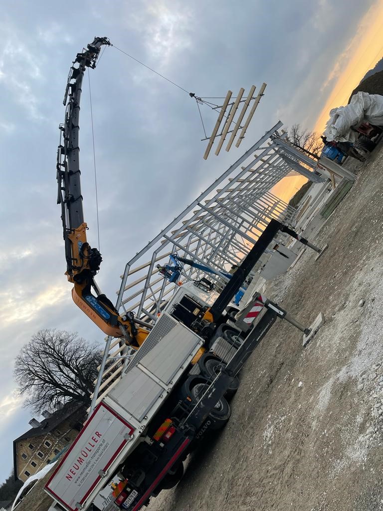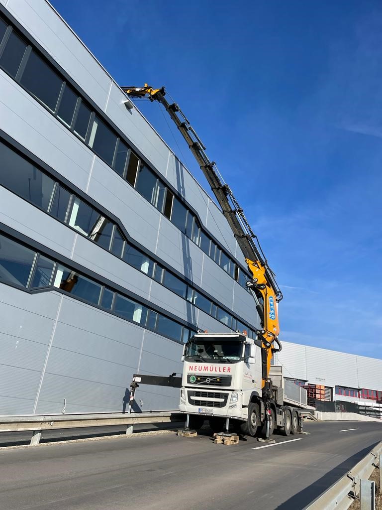Für schwere Lasten kommen die Fahrzeugkräne von Transporte Neumüller Friedrich e.U. aus Hofkirchen im Mühlkreis zum Einsatz.