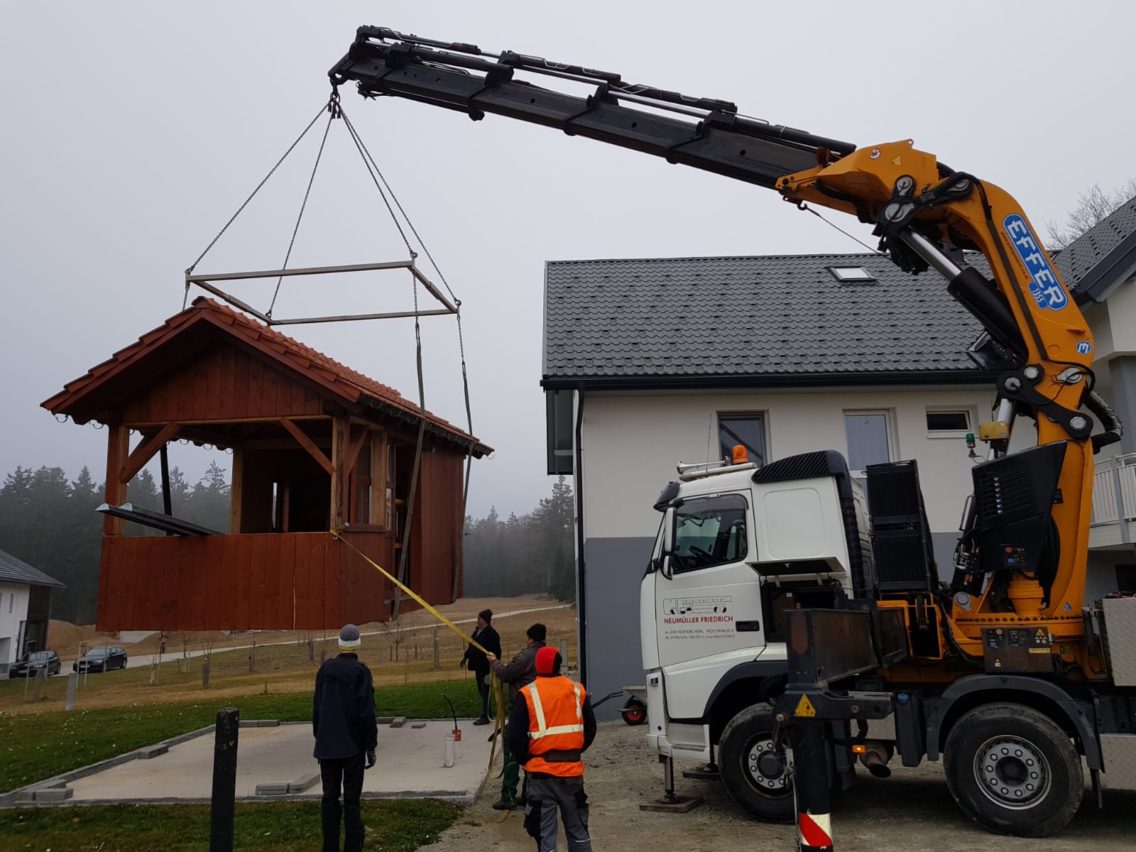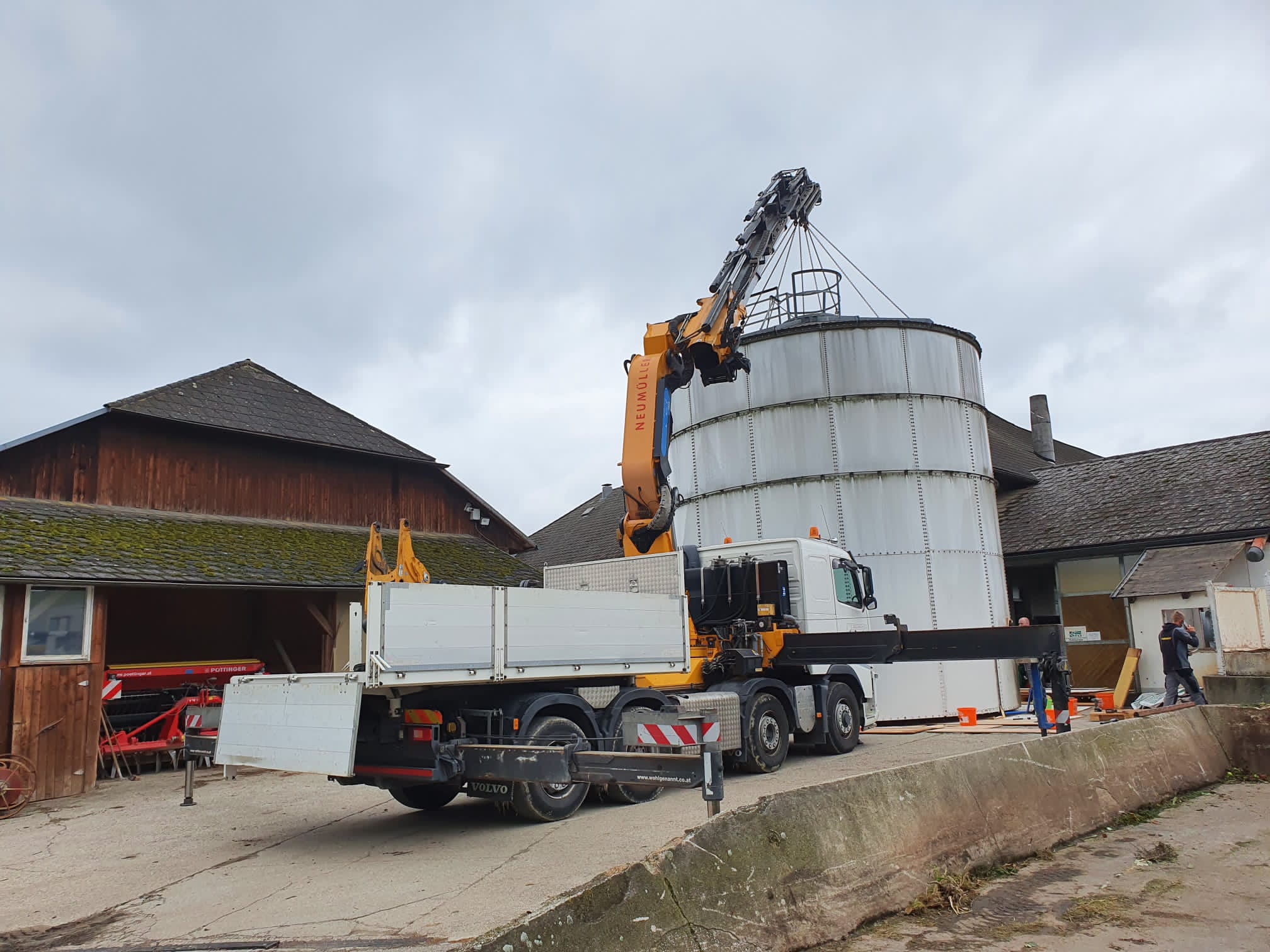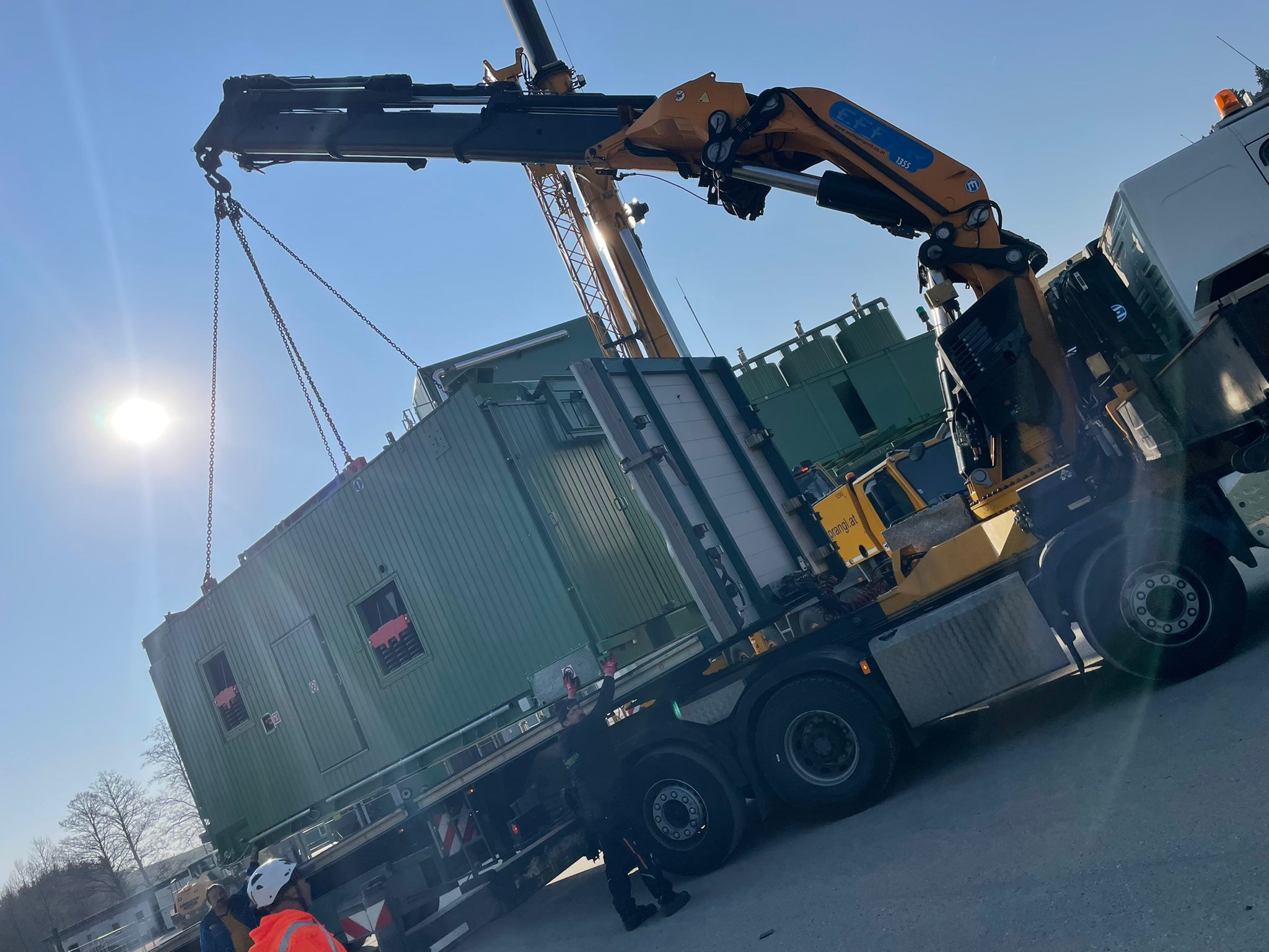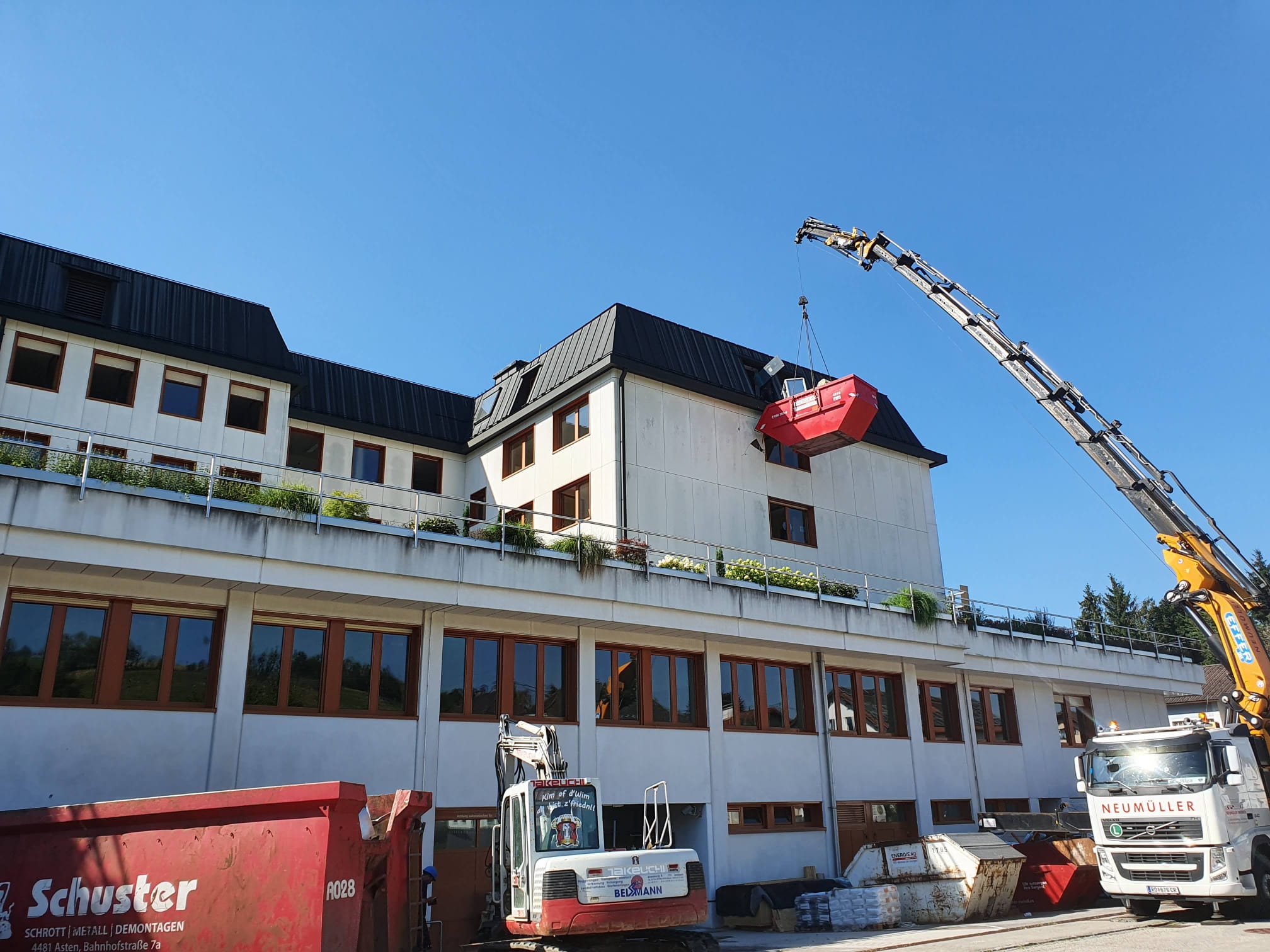 Für schwere Lasten kommen die Fahrzeugkräne von Transporte Neumüller Friedrich e.U. aus Hofkirchen im Mühlkreis zum Einsatz.