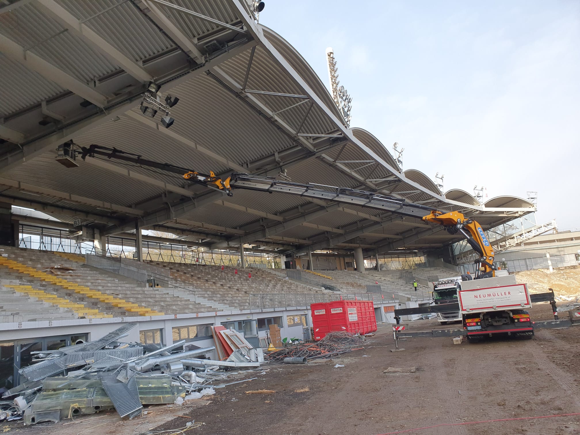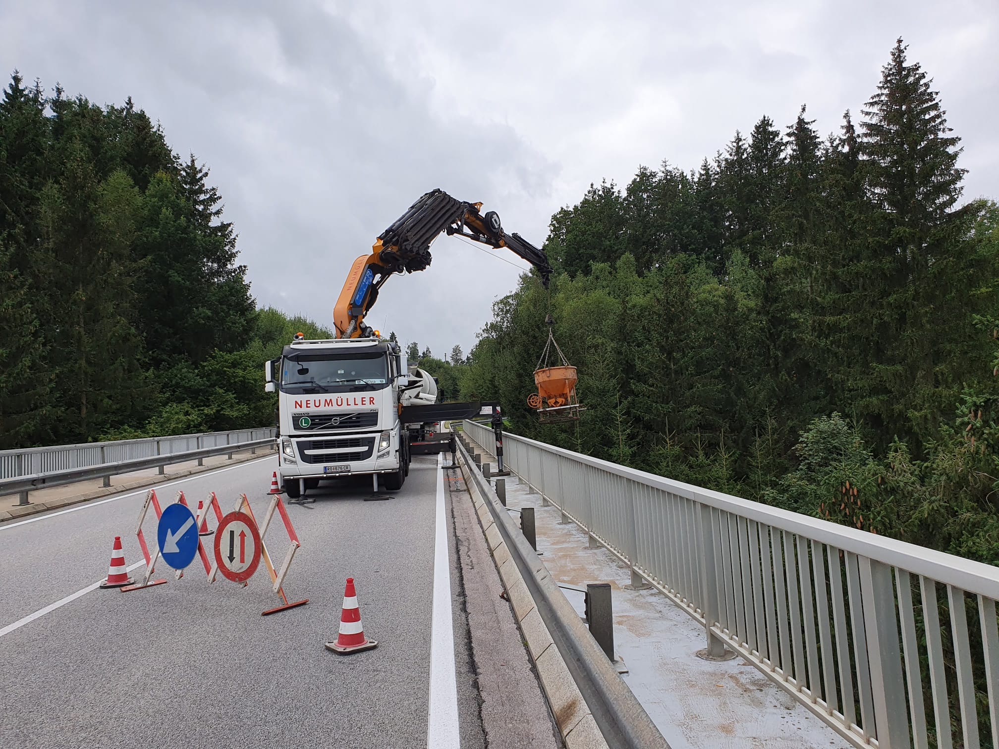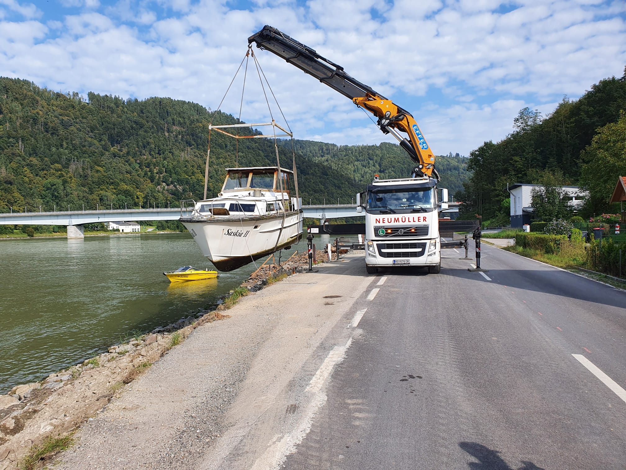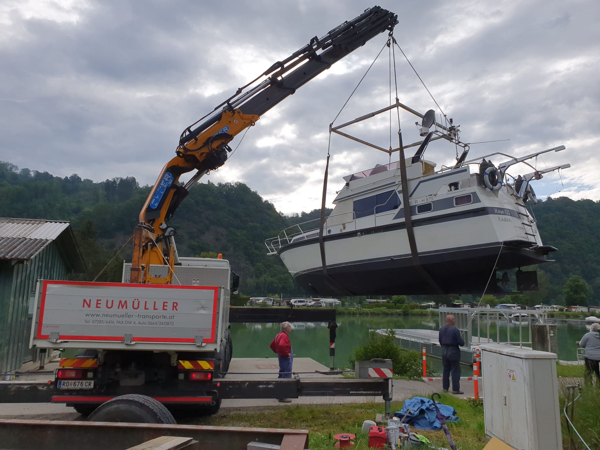 Für schwere Lasten kommen die Fahrzeugkräne von Transporte Neumüller Friedrich e.U. aus Hofkirchen im Mühlkreis zum Einsatz.